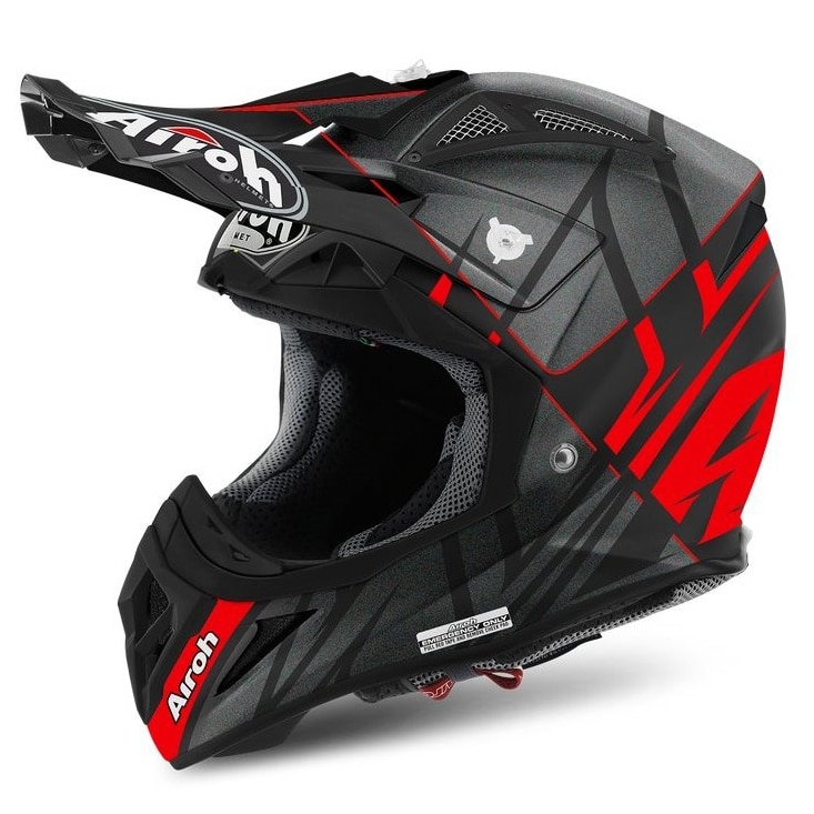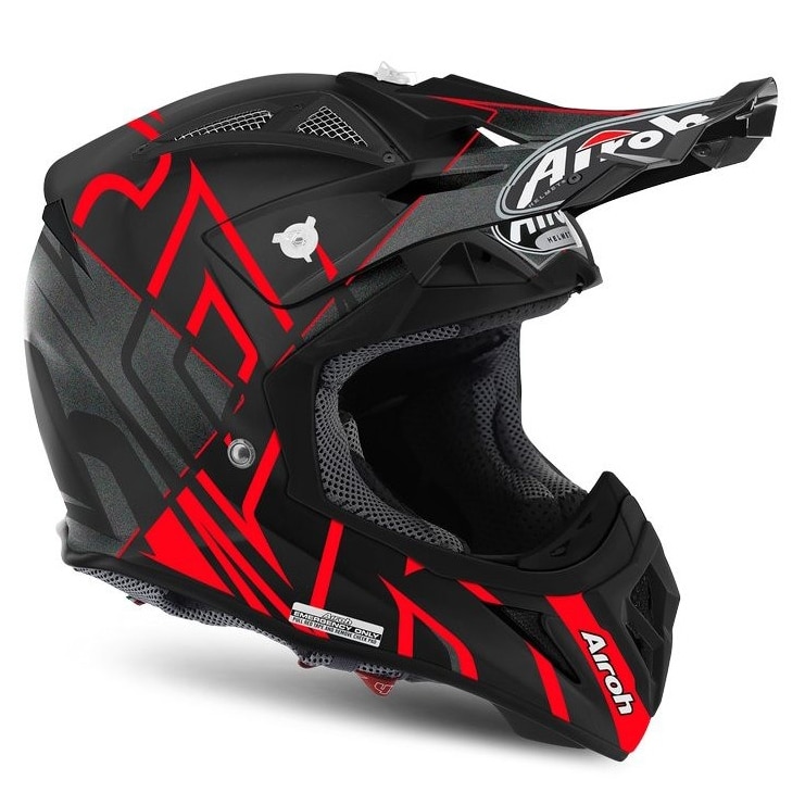 Aviator 2.2 is all what pros and lovers of adrenaline fuelled off-road rides are looking for to hit dusty and muddy roads with absolutely no concerns.This last-generation Airoh® MX helmet is equipped with all leading-edge technologies making this model a one-of-a-kind product in the world, with absolute comfort, breathability and protection even under the most extreme situations. Airoh is pride to offer consumers a product that is exactly identical to the version used by its champions.It is sold in two different shell sizes with superior 100% carbon/Kevlar composite fibre making it one of the lightest and highest performing helmets on the market to meet the requirements of particularly demanding riders. For ultimate safety, the helmet includes an emergency cheek pad release system (A.E.F.R.).Standard features that come with this model include a wide-field-of-view visor, which is also suited for the use of last-generation goggles, multiple vents, a peak with two different extensions, a Go-Pro® support, covers for upper vents, a kit of spare screws, a helmet bag and a closure hardware kit (2017 novelty).