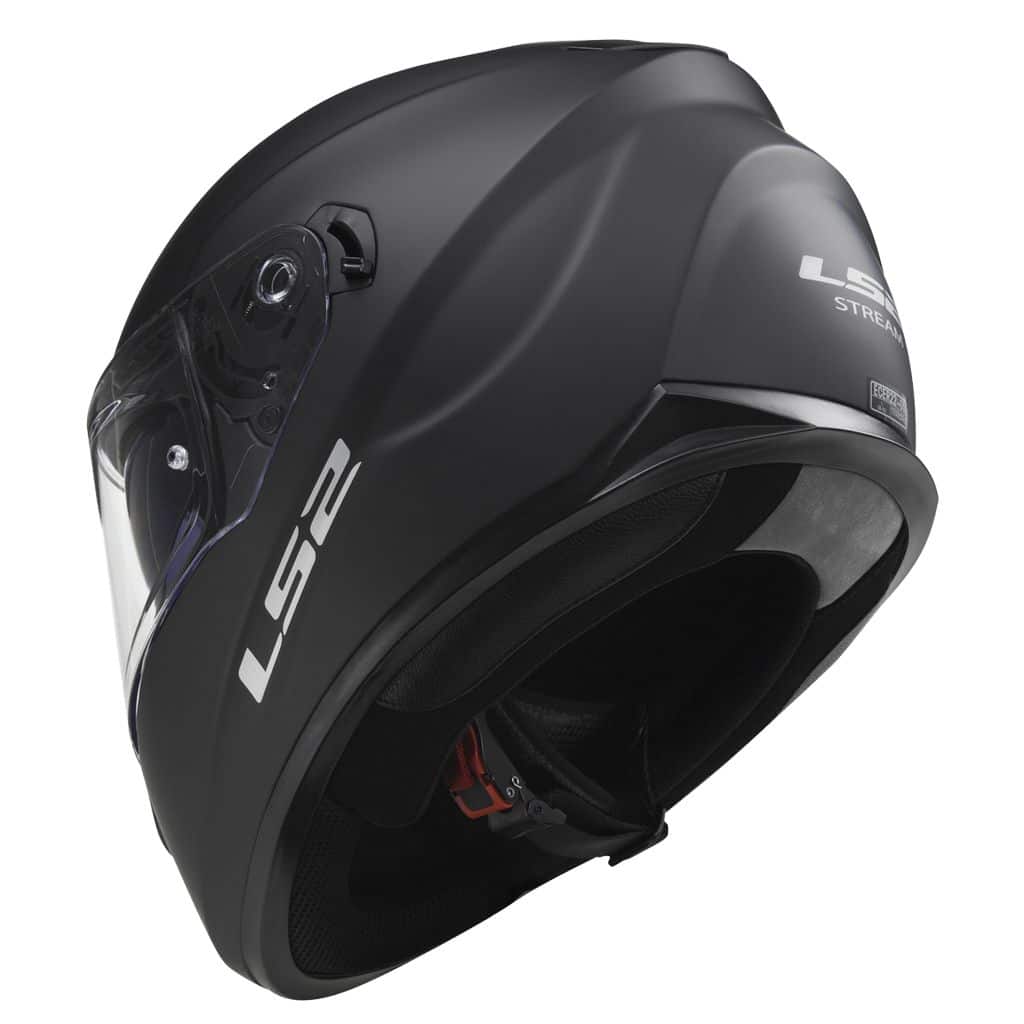 Modern full-face helmet for touring or naked bikes riders with integrated sun visor. FF320 Stream helmet comes with many useful features such as drop down sun visor, removable chin curtain or breath deflector. There are glasses grooves too in the sides so the helmet is suitable also for eyeglasses. Shell from thermoplastic HPTT (High Pressure Thermoplastic Resin Technology) is very light yet secure. Optically correct „A-Class“ lockable clear visor is UV resistant, scratch resistant and fog resistant, and is easy to unlock and open with one hand only. Laser cut padding for comfortable fit. Removable and washable Magna-Tech Liner. Reflective safety patch.Features: