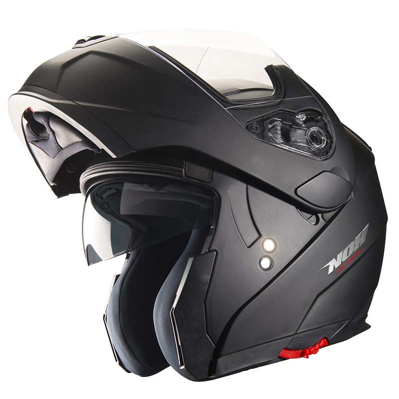 Polycarbonate kjálkahjálmur frá Nox. Með tvöfaldri linsu (sólgleri). Hægt að fjarlægja tauefnið og þvo í vél. Góð öndun til að tryggja öndun og rétt hitastig. Smella með hraðfestingu. ECE2205 vottun. Poki fylgir.