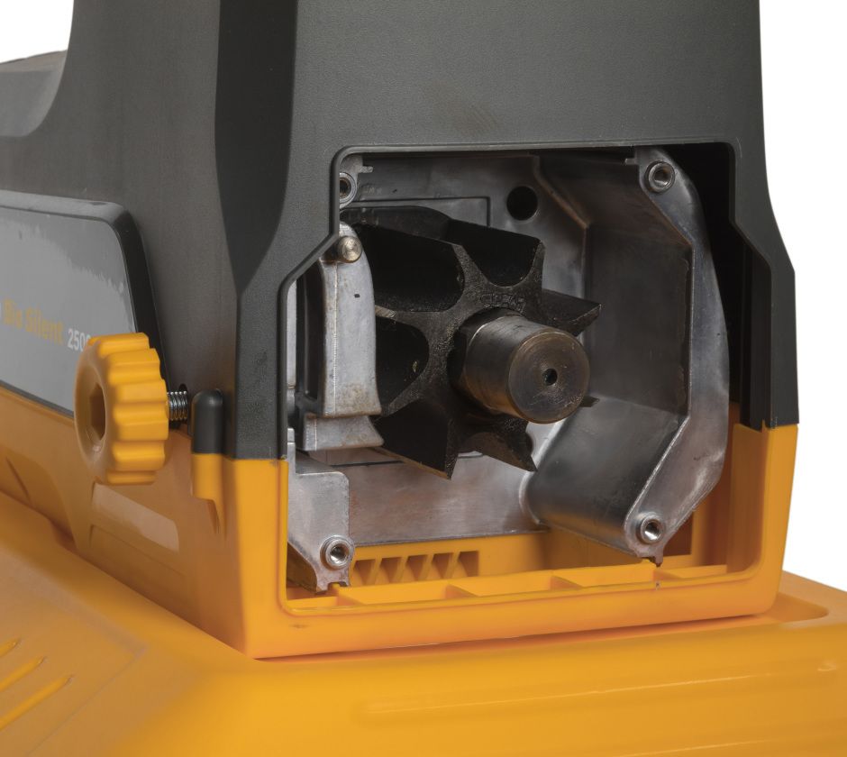 Shredder with 2500 W electric motor and eight-toothed rotary roller.