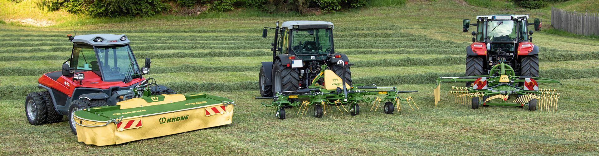 - Vendro 420, 620 og 820 Highland: Léttar snúningsvélar með nýju KRONE OptiTurn rótorunum og vélrænni kantdreifingu fyrir skilvirka vinnslu í halla.