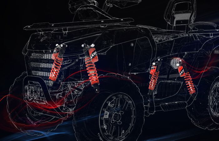 Fullstillanlegir gasdemparar bæði framan og aftan skila frábærum aksturseiginleikum, framúrskarandi meðhöndlun og trausti til að sigrast á erfiðasta landslagi. Mikil slaglengd - 210 mm að aftan og 180 mm að framan.
